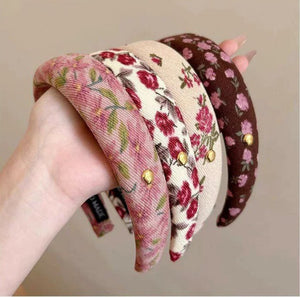 أطواق شعر بنقشات زهرية 4 قطع أنيقة للبنات