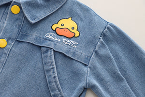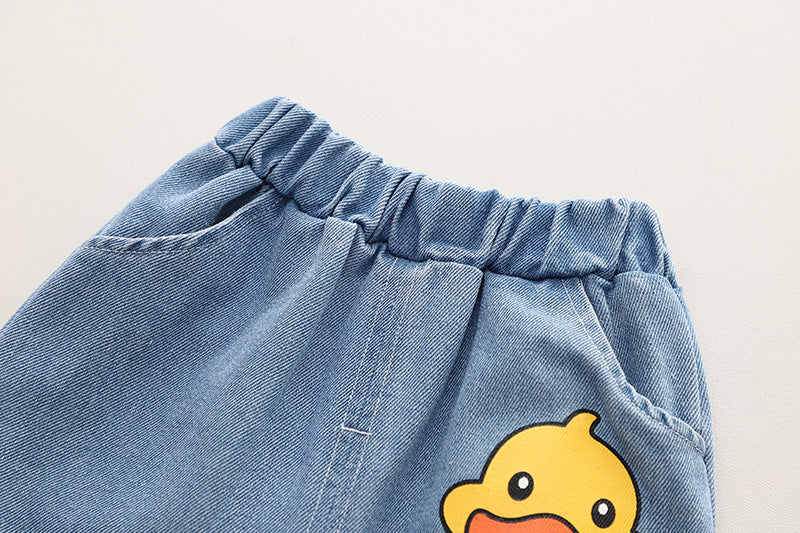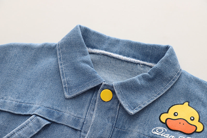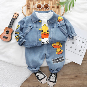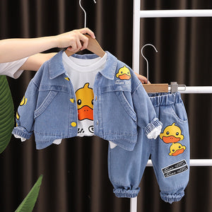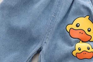 طقم جينز أطفال 3 قطع بطبعة بطة لمظهر مرح ومريح