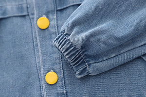 مصمم للحركة اليومية والأسلوب المرح، هذا الطقم الثلاثي هو الخيار المثالي للأطفال في الأيام النشيطة والمناسبات غير الرسمية. يتميز بجاكيت جينز عملي بقصة قصيرة مزين برسومات بطة لطيفة، وتيشيرت قطني ناعم بطبعة بارزة، وسروال جينز مطاطي بخصر مريح لتوفير أقصى درجات الراحة والحرية في الحركة.