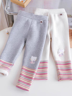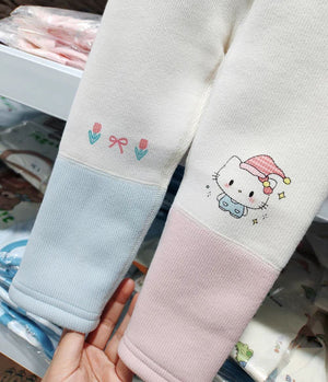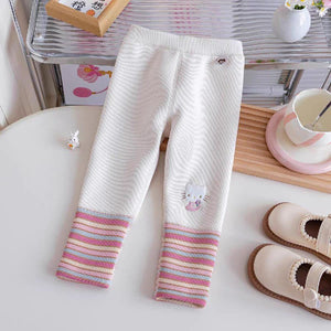 مصمم ليمنح طفلتك الدفء والنعومة خلال الأيام الباردة، يأتي هذا البنطال الصوفي بقصة مرنة ومريحة مثالية للارتداء اليومي. الخامة المحاكة تمنح ملمسًا لطيفًا على البشرة، بينما تضيف التفاصيل الكرتونية اللطيفة على الساق لمسة مرح طفولية تزيد من جمال الإطلالة.