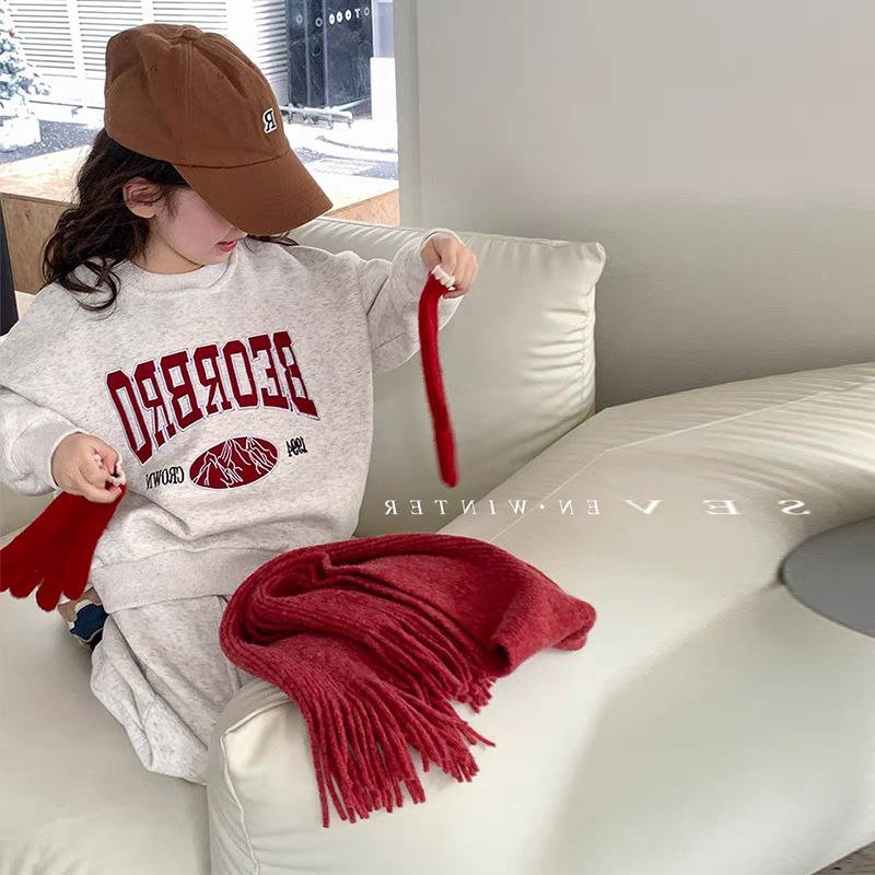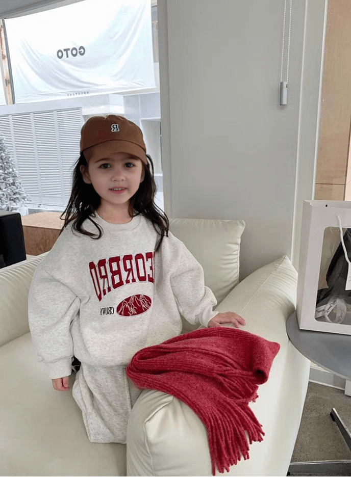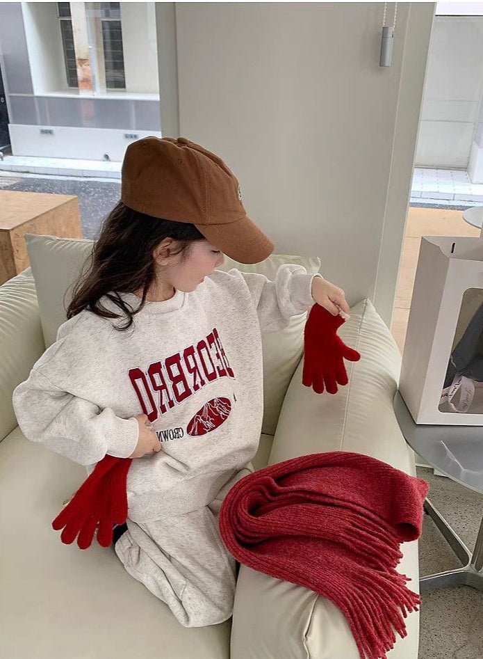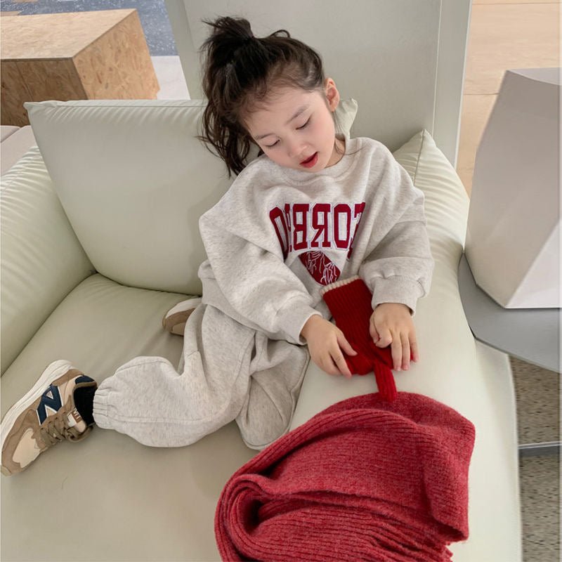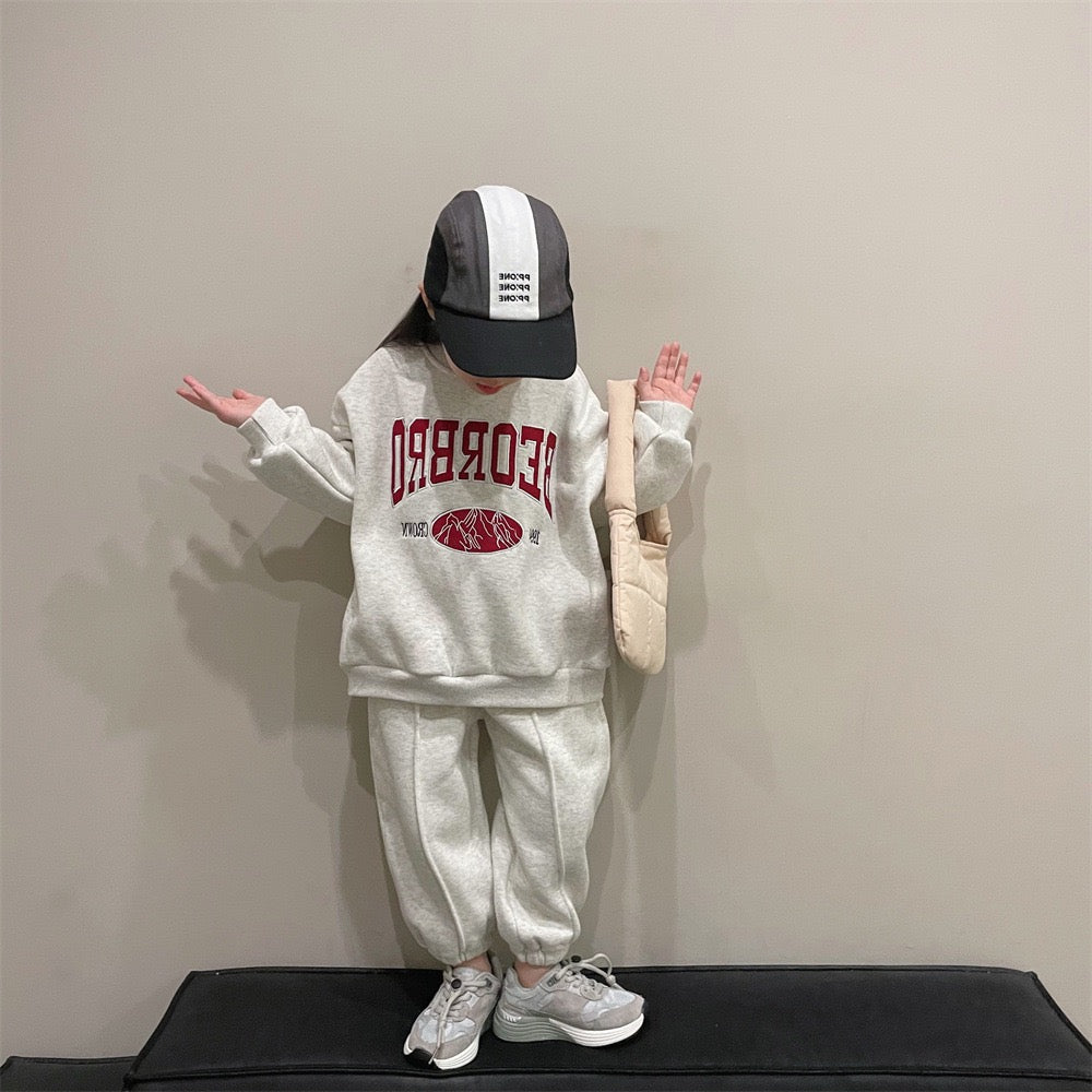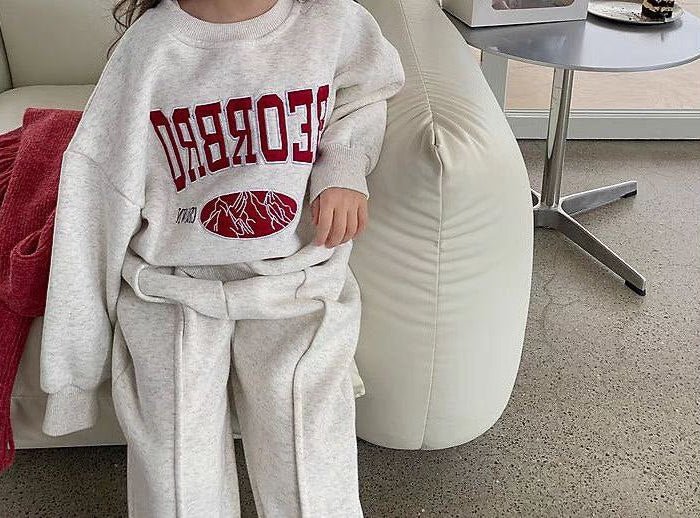 طقم رياضي قطعتين بطبعة حروف تصميم شتوي للاطفال