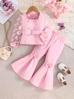 الموديل: طقم بناتي مكون من جاكيت وسروال واسع