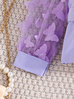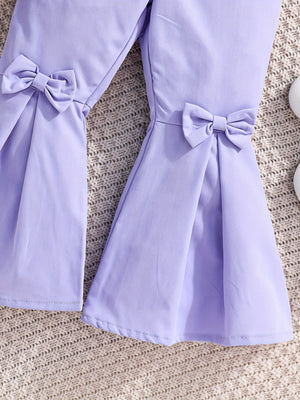 طقم بناتي 3 قطع بلون (البنفسجي الفاتح) بأكمام شفافة وبنطلون واسع