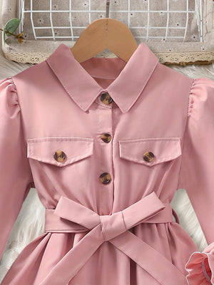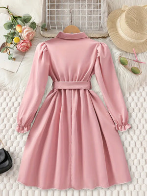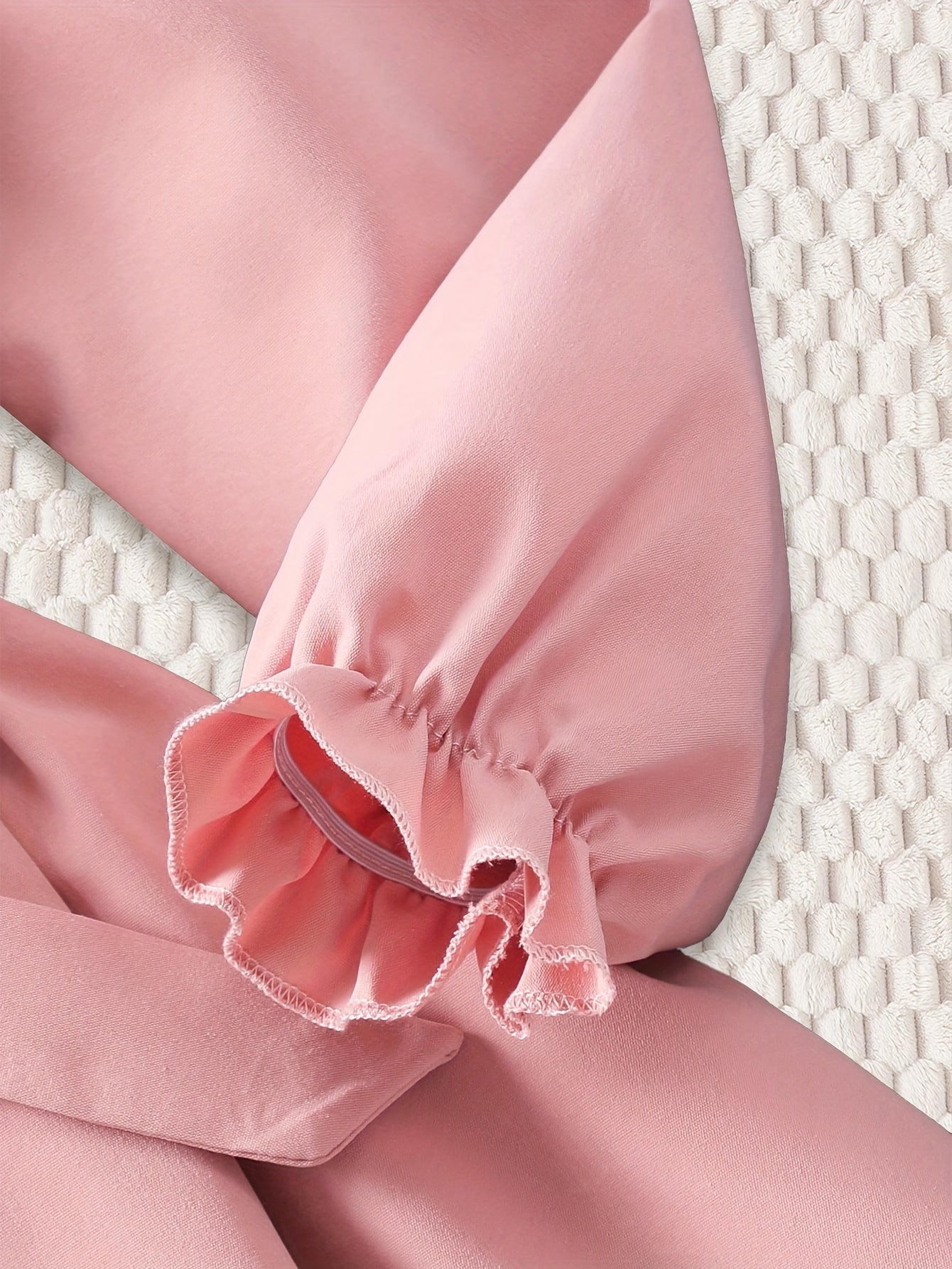 استمتعي بأناقة مريحة مع هذا الفستان الوردي المصنوع بإتقان من قماش ناعم وخفيف يمنحك إطلالة متألقة طوال اليوم. يتميز بقصة واسعة تضفي حرية في الحركة، مع أكمام طويلة مزينة بكشكشة أنثوية ولمسات ناعمة عند الأطراف. الحزام القابل للربط عند الخصر يبرز جمال القوام ويضيف لمسة كلاسيكية ساحرة.