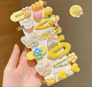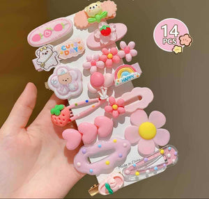 صُمّمت هذه المجموعة الساحرة من إكسسوارات الشعر لتمنح طفلتك إطلالة مليئة بالنعومة والمرح في كل المناسبات. تجمع بين ألوان فاتحة مبهجة وخامات ناعمة على الشعر، مع تصاميم مستوحاة من الزهور والفواكه والقلوب لتضفي لمسة طفولية راقية على تسريحة الشعر. مشابك خفيفة، ثابتة، وبلا انزلاق، مناسبة للاستخدام اليومي أو للزيارات والمناسبات الخاصة