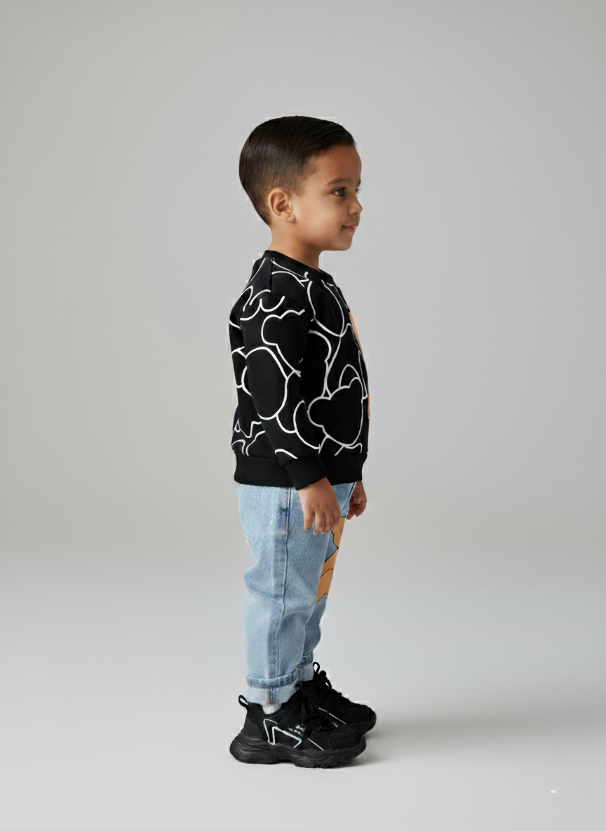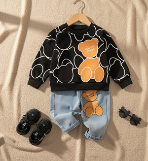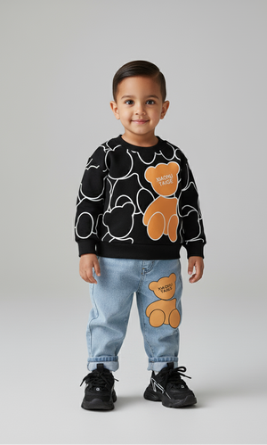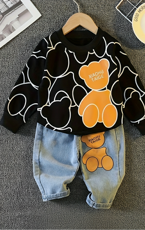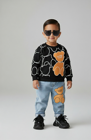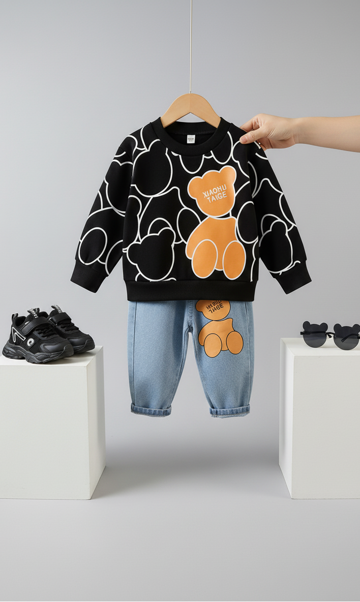 يأتي هذا الطقم العصري ليمنح طفلك مظهرًا أنيقًا ومرحًا في نفس الوقت. تصميم الدب المحبوب يضفي لمسة مرحة على الإطلالة، بينما يوفر القماش الناعم والعملي راحة تدوم طوال اليوم. القميص الدافئ والبنطال الجينز المرن يشكّلان طقمًا مثاليًا للمدرسة، الخروج اليومي، أو حتى جلسات اللعب. مزيج مثالي بين الأسلوب الجذاب والراحة العملية.