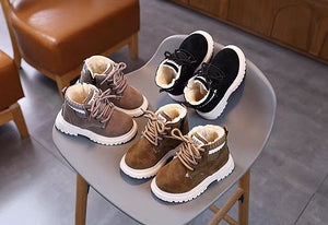 صُمِّمت هذه الأحذية الشتوية الكلاسيكية لتمنح طفلك الدفء والراحة بأناقة. بفضل بطانتها الناعمة بالفرو الصناعي ونعلها المقاوم للانزلاق، توفّر هذه الأحذية ثباتًا وراحة مثالية خلال الأيام الباردة. تصميمها بالأربطة مع سحّاب جانبي يجعل ارتداءها سهلاً ومظهرها أنيقًا يناسب كل الإطلالات الشتوية.
