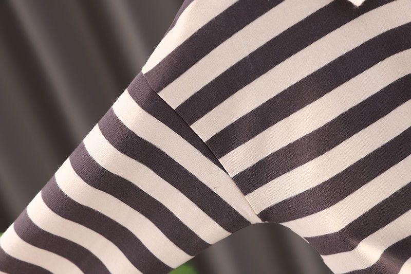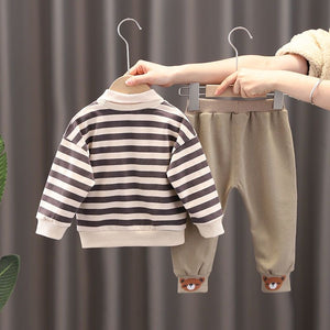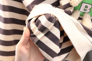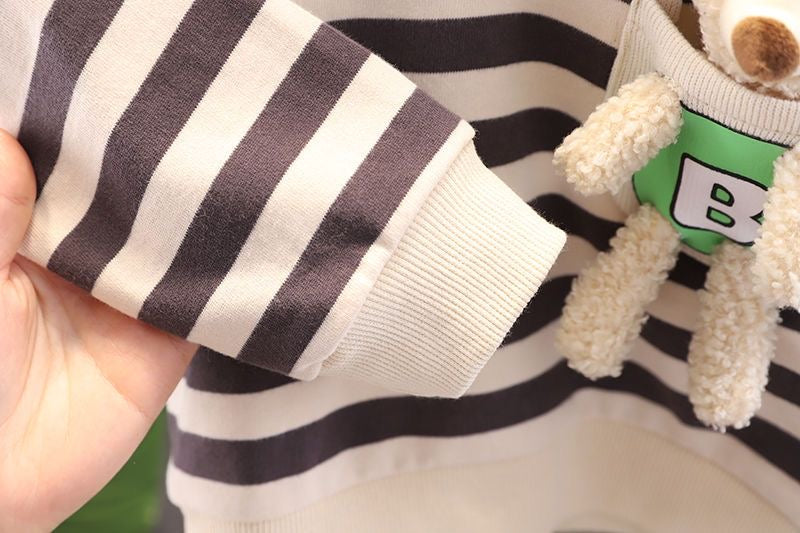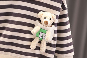 طقم أطفال مخطط بياقة بولو ودب ثلاثي الأبعاد
