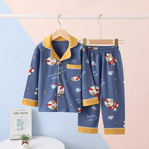 بيجاما أطفال بطبعات كرتونية قطنية خفيفة