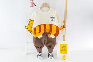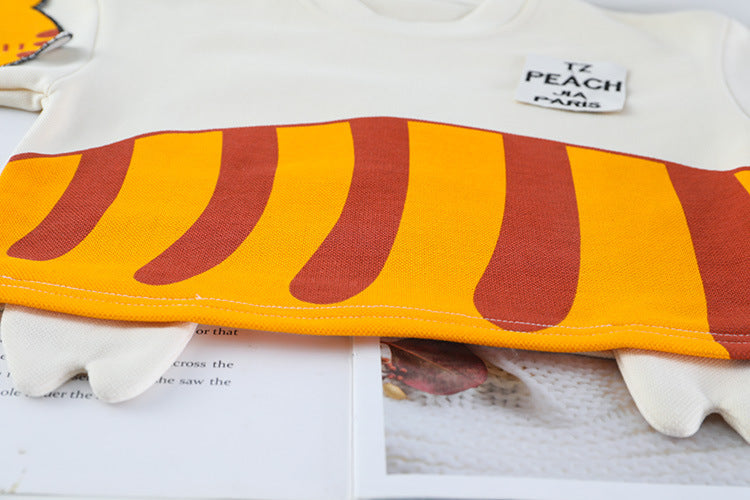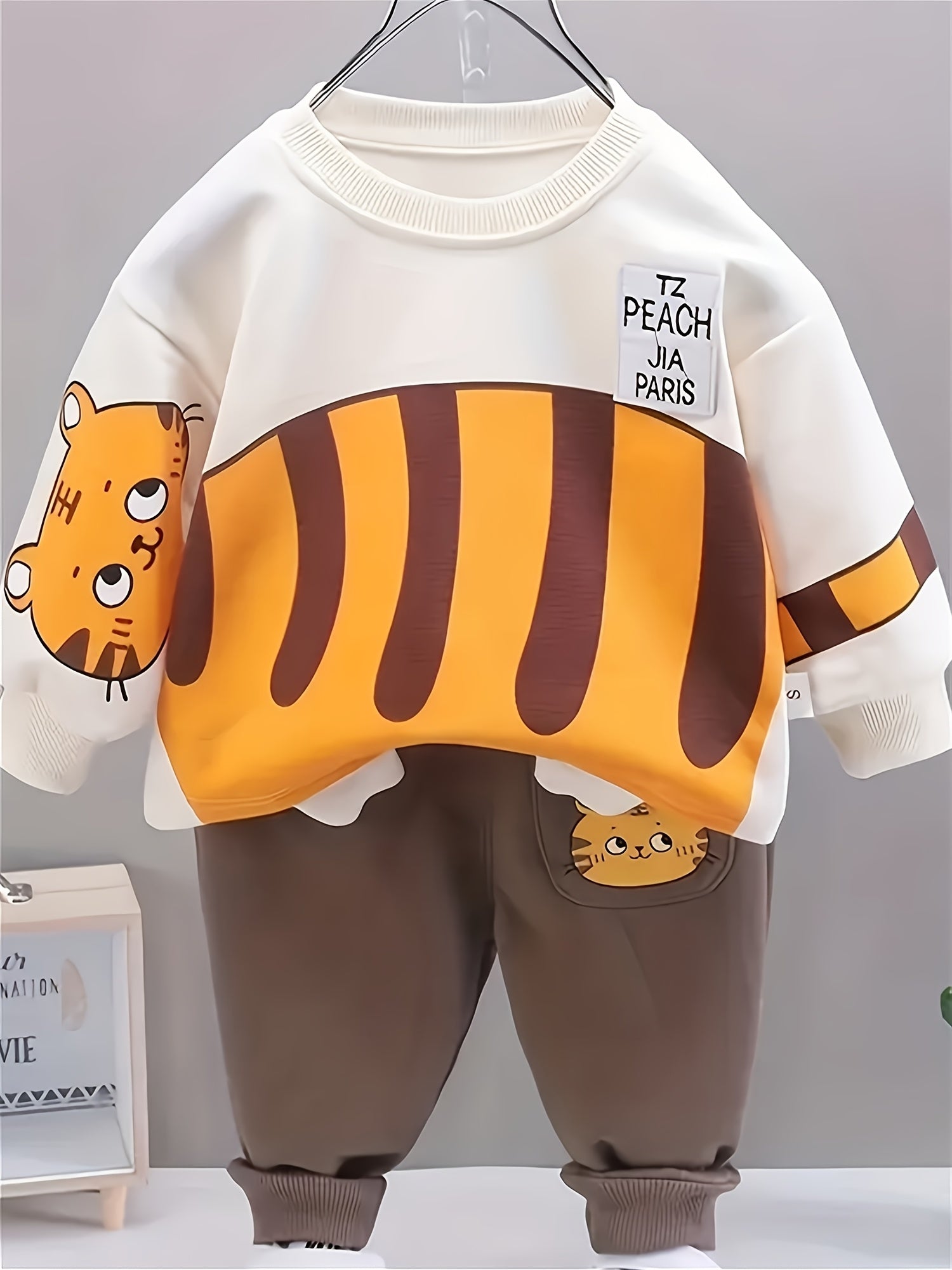 صُمم هذا الطقم العصري برسومات نمر مرحة ليمنح طفلك مظهرًا لافتًا وراحة لا تُضاهى. الخامة ناعمة، دافئة، ومرنة لتمنح صغيرك حرية الحركة طوال اليوم – سواء في مغامرات اللعب أو نزهات العائلة. الجاكيت برسمة مخططة جذابة والأرجل بجيب لطيف بطابع النمر الصغير