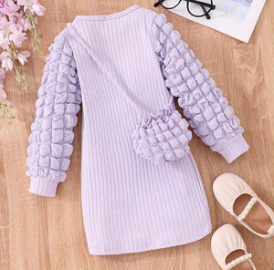 فستان بناتي شتوي بأكمام منفوخة وحقيبة كتف مطابقة