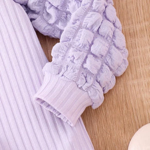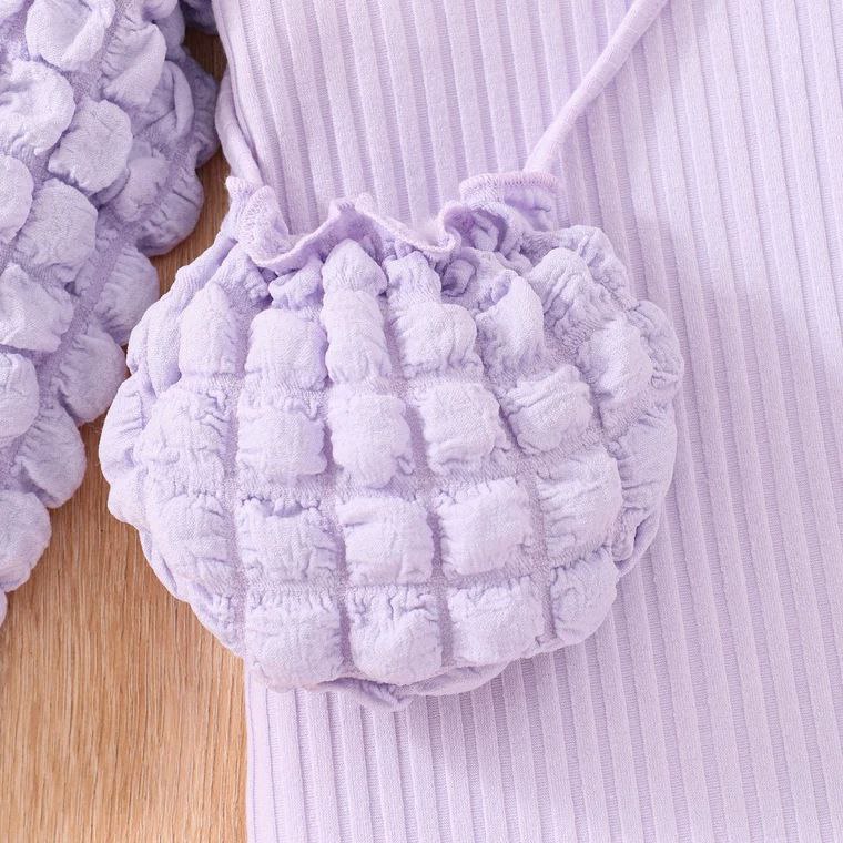 صُمّم هذا الفستان البنفسجي الرائع ليمنح صغيرتك لمسة من الأناقة العصرية والدلال الأنثوي. يتميز بأكمام منتفخة مزخرفة بملمس فخم ثلاثي الأبعاد، مع خامة مضلعة مريحة وناعمة على بشرة الطفل. يأتي الفستان مع حقيبة صغيرة مطابقة تضيف لمسة من اللعب والتميز لتكون الإطلالة كاملة في كل خروجة أو مناسبة