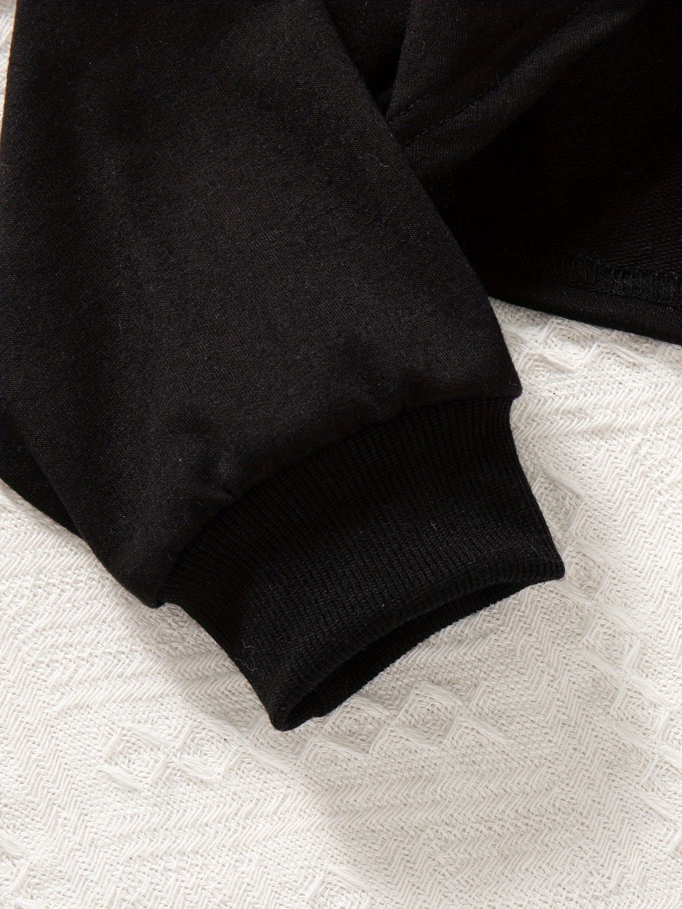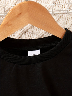 • توب قصير بأكمام طويلة من القطن الناعم بلون أسود أنيق