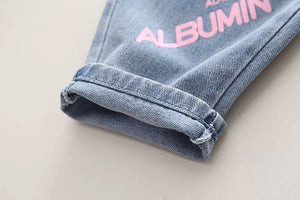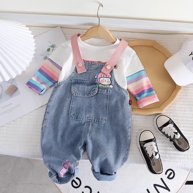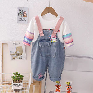 طقم جينز بربطات كت وتيشيرت بطبعات كرتونية