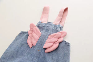 السالوبيت: جينز أزرق فاتح مع حمالات وردية وجناحين من القماش الوردي.