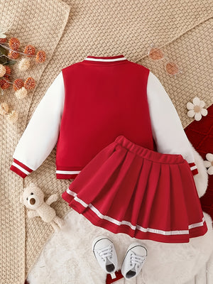 طقم قطعتين جاكيت وعبارة "Baby Girl" وتنورة مطوية