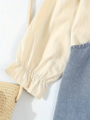 تصميم مكوّن من قطعتين (قميص + فستان جينز بحمّالات)