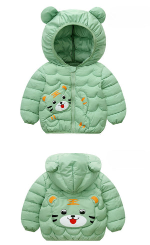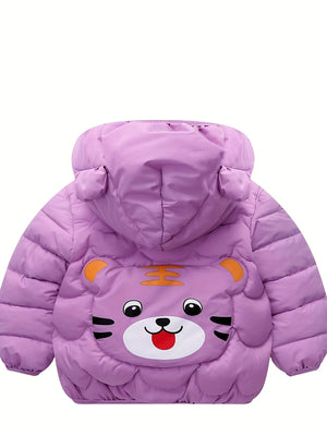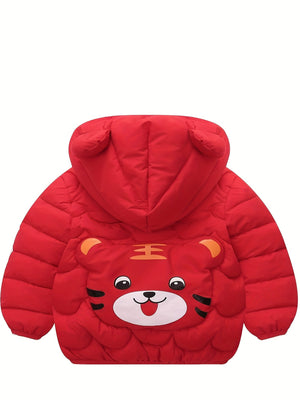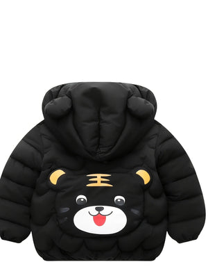 تم تصميم جاكيت "تايجر كيد" ليناسب حركة الأطفال اليومية مع لمسة كرتونية محببة. يمنح هذا المعطف الدفء اللازم خلال الأيام الباردة، بفضل خامته المبطنة وخفة وزنه وسهولة ارتدائه. رسمة النمر ثلاثية الأبعاد تضيف له لمسة جمالية مرحة، بينما تجعل أذنا القبعة مظهر الطفل أكثر جاذبية.
