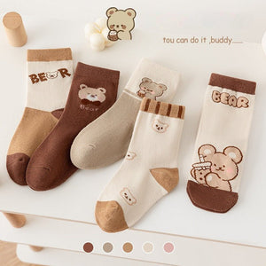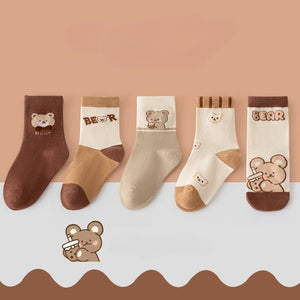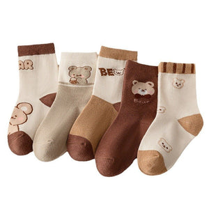 دلّلي أقدام صغيركِ بأجمل الجوارب القطنية برسومات دب لطيفة! هذه المجموعة المكونة من 5 أزواج تأتي بتصميمات مرحة وألوان دافئة محايدة، لتضيف لمسة من البهجة لكل إطلالة. مصنوعة من خامة ناعمة ومريحة، مثالية للارتداء اليومي خلال فصلي الخريف والشتاء
