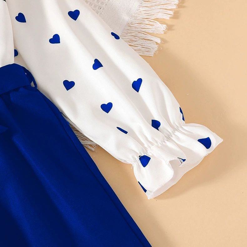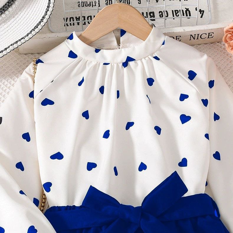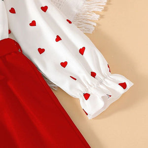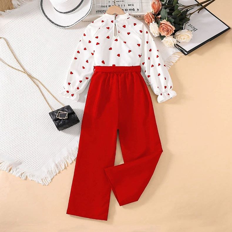 طقم بناتي قطعتين أنيق بفيونكة وطبعة قلوب