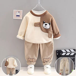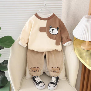 طقم شتوي دافئ من قطعتين بطبعة دب للأولاد