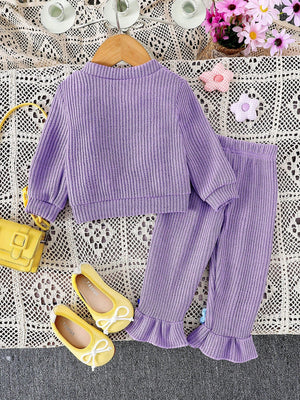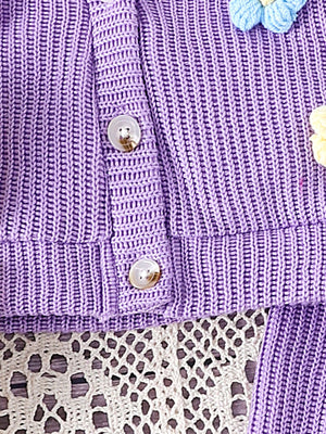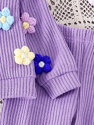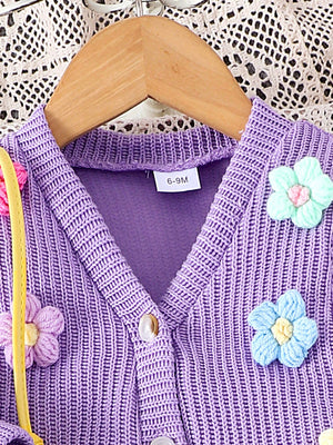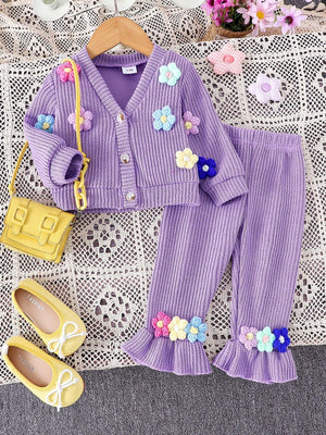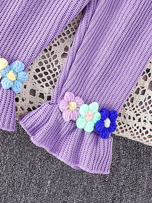 طقم صوفي قطعتين أزهار بارزة للبنات