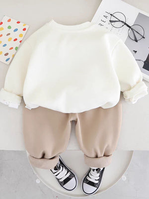 مصمم ليجمع بين الدفء والراحة بإطلالة طفولية مرحة، يأتي هذا الطقم الشتوي بقصة عملية تمنح الطفل حرية الحركة طوال اليوم. القميص مصنوع من قماش ناعم بخامة دافئة، مزين بطبعة مبتسمة تضيف لمسة بهجة ومرح، بينما يمنح البنطال بقصته المريحة إحساسًا مضاعفًا بالدفء، مع أساور سفلية تحافظ على الثبات والراحة.