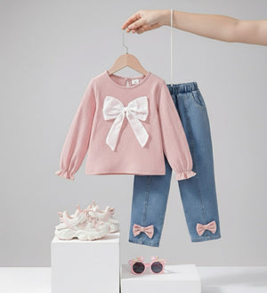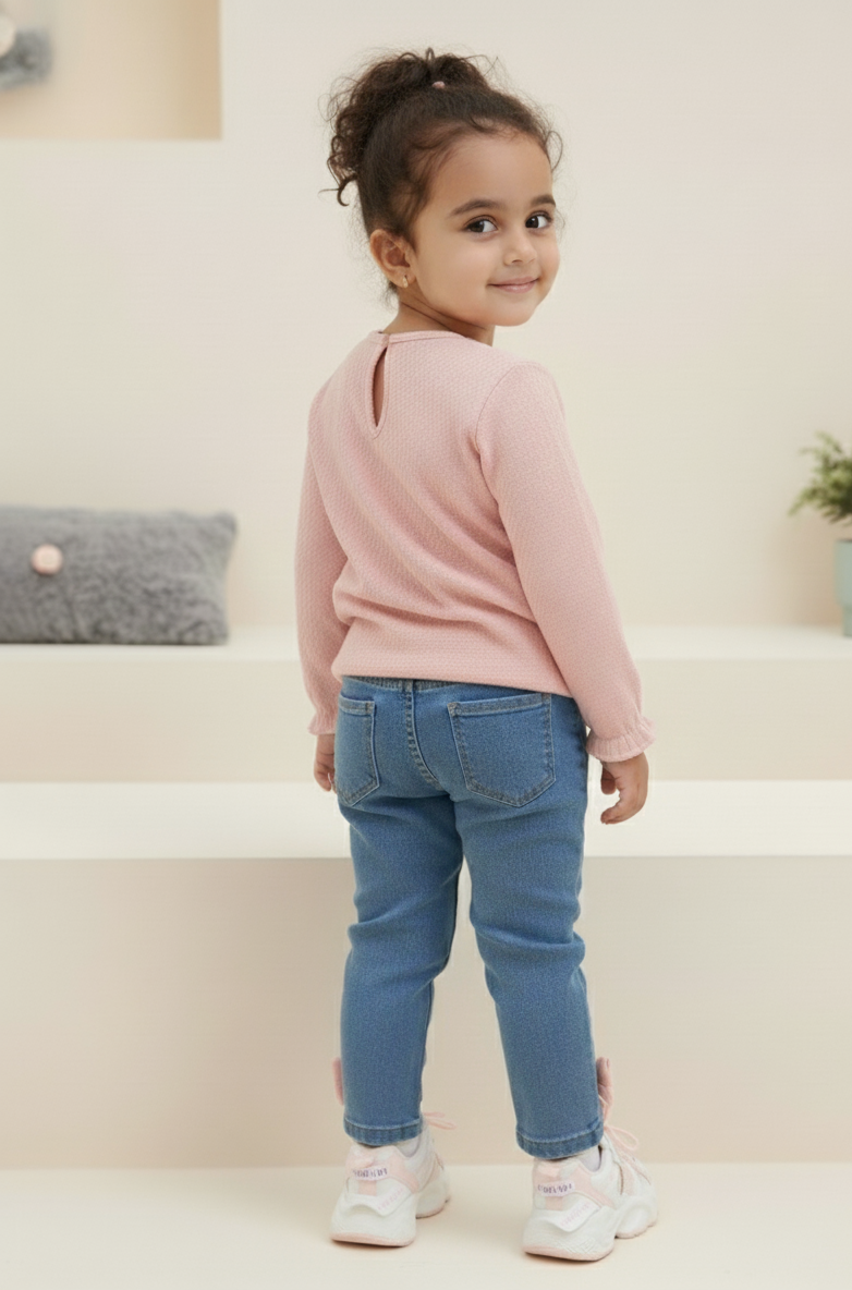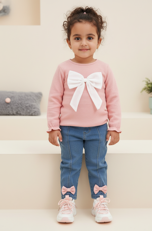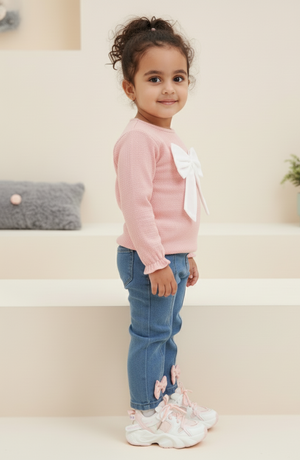 • بنطال جينز عملي مزين بفيونات على الأقدام لإطلالة متناغمة