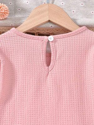 يمنح هذا الطقم البناتي إطلالة فائقة النعومة والأنوثة بفضل تصميمه الوردي الهادئ وتفاصيل العقد الكبيرة التي تضيف لمسة رقيّ وبراءة في الوقت نفسه. تم تنسيقه بعناية ليكون مريحًا، أنيقًا، ومثاليًا للخروجات اليومية والصور اللطيفة. خامات ناعمة وقصة مريحة تجعل طفلتك تستمتع بحركتها بكل حرية وأناقة.