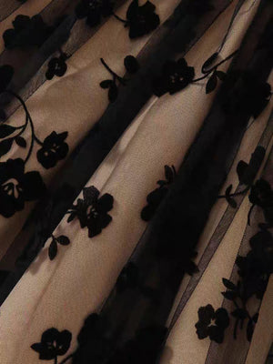 • أكمام تول شفافة مطرّزة بنقشات زهرية أنيقة