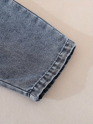 سالوبيت جينز مع بلوزة بيضاء وتطريز دب رائع
