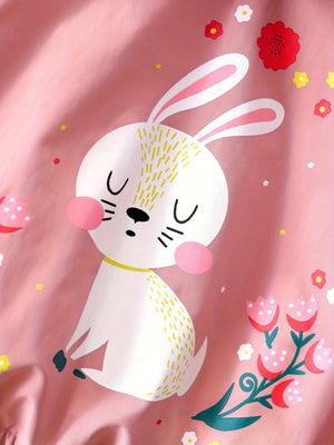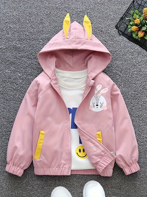 جاكيت بناتي وردي برسمة أرنب لطيف