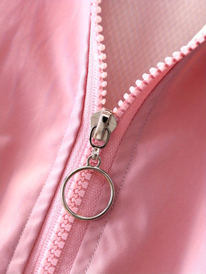 تم تصميم هذا الجاكيت من خامة مقاومة للماء وخفيفة الوزن، ليكون مثاليًا لأيام الخريف والشتاء المعتدلة. يوفر الراحة والدفء مع لمسة من البراءة والجمال الطفولي.