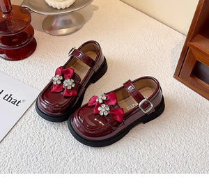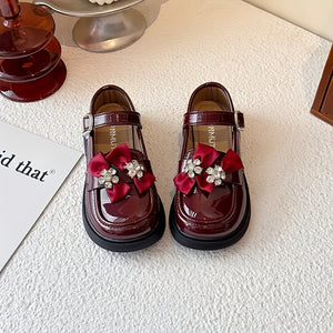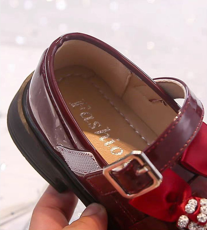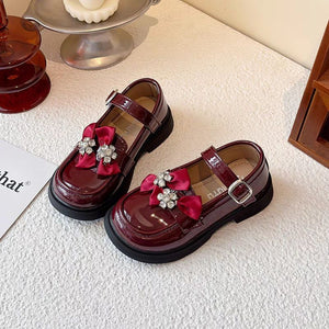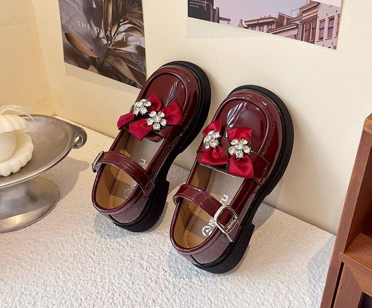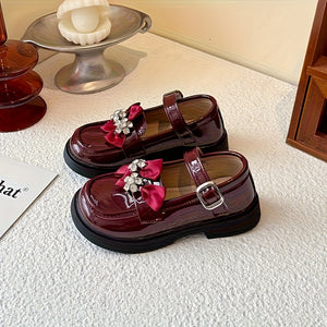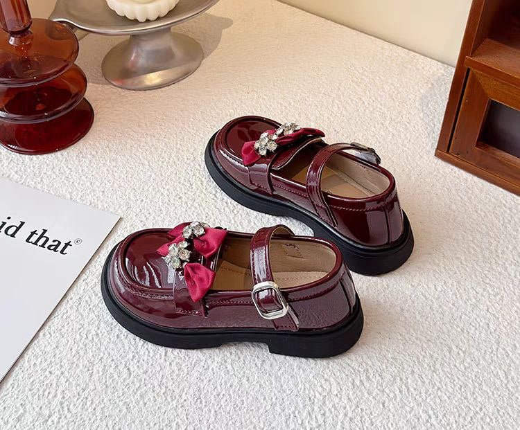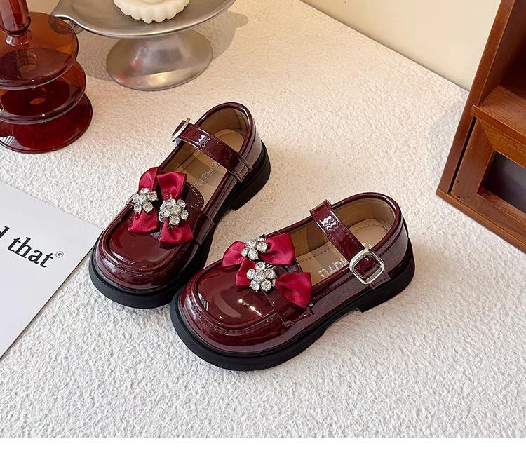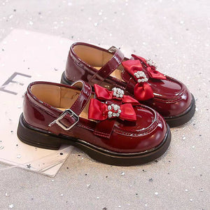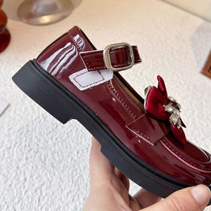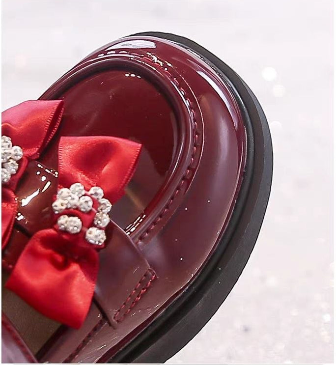حذاء أنيق بفيونكة مرصعة وألوان لامعة للبنات