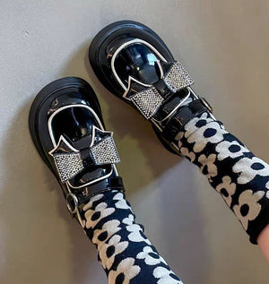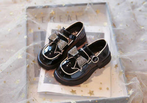 يأتي بتصميم لامع فاخر مع فيونكة مرصّعة بالكريستال تمنحه مظهراً راقياً يشبه أحذية الأميرات، بينما توفر بطانته الناعمة ونعلُه المرن خطوات مريحة طوال اليوم.