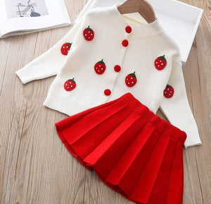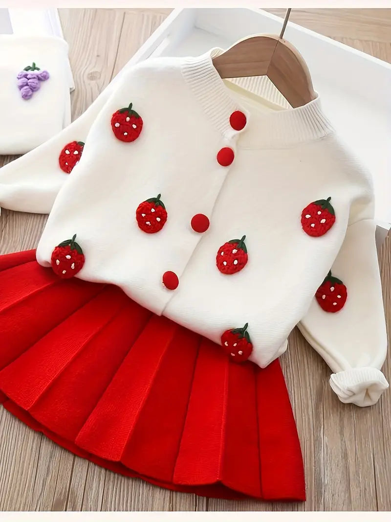 • الفراولة: كنزة بيضاء مع فواكه حمراء وتنورة حمراء