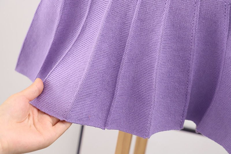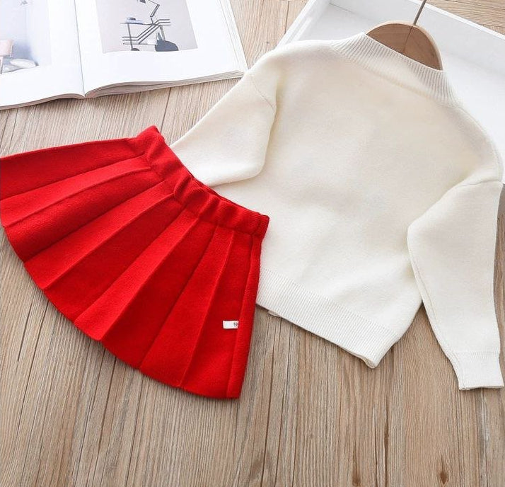 • القَصّة: تنورة بطيّات واسعة مع كنزة بأكمام طويلة