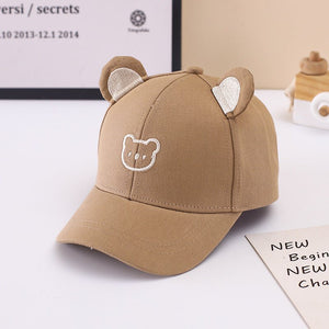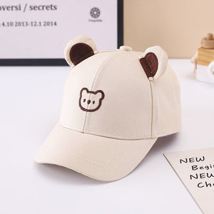 قبعة أطفال بأذنين دب مطرزة  بتصميم كرتوني