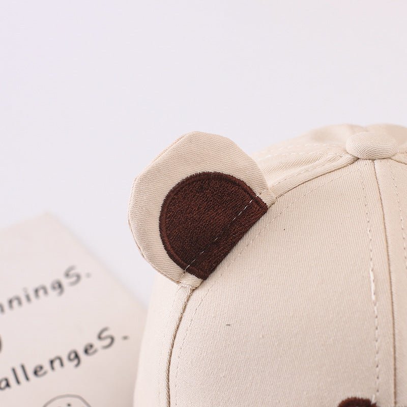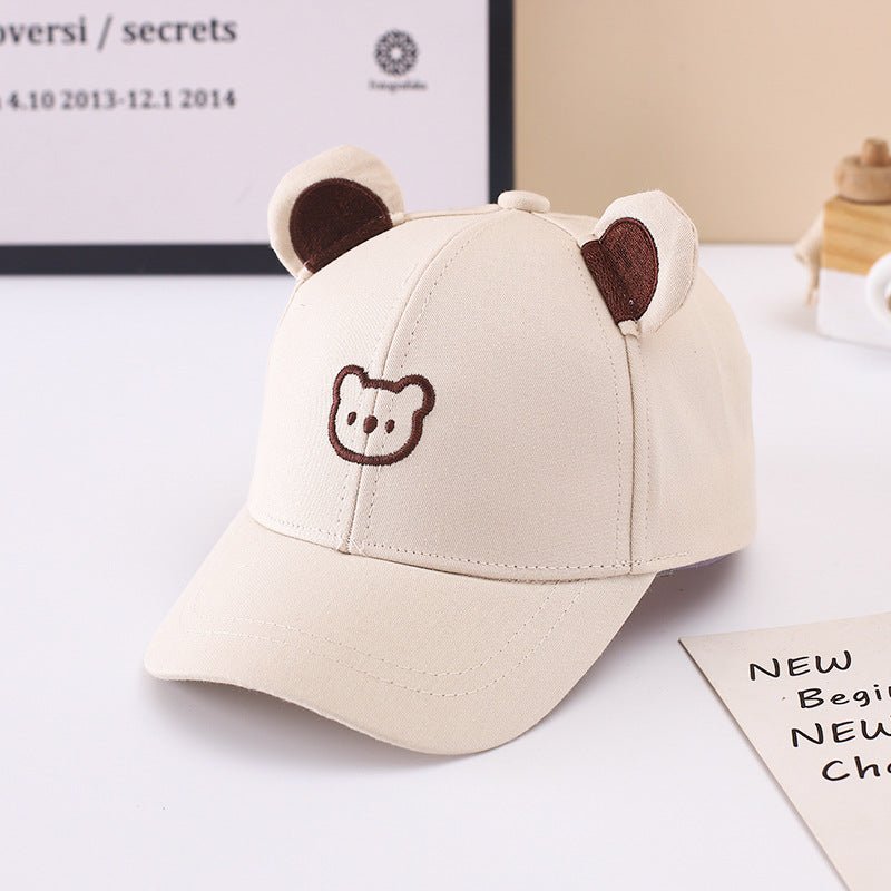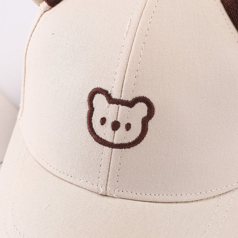 قبعة أطفال بأذنين دب مطرزة بتصميم كرتوني