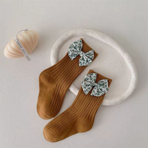 مجموعة جوارب مزينة بفيونكات قماشية للبنات