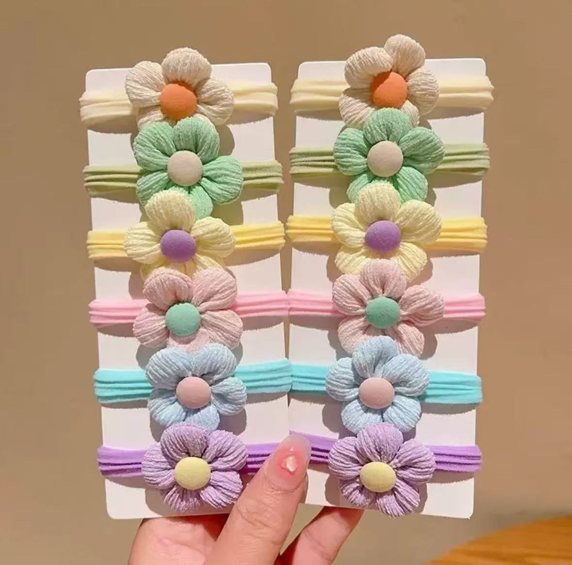 • تحتوي على عدة ربطات شعر مزينة بورود وفيونكات